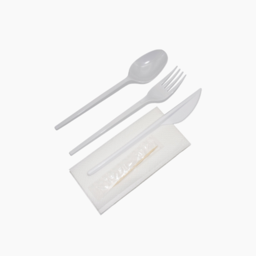 Набор столовых приборов 5 белый (вилка, ложка, нож, салфетка, зубочистка)