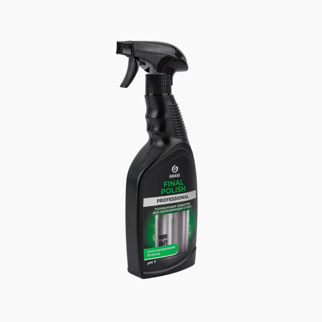 Высокоэффективное средство по уходу за металлическими поверхностями Final Polish. Предназначено для полировки, очистки и придания блеска поверхностям из нержавеющей стали, цветных металлов, а также никелированным и хромированным поверхностям. Используется для обработки наружных поверхностей пищевого технологического оборудования, в том числе холодильных камер, печей, пароконвектоматов, посудомоечных и таромоечных машин, а также лифтов, поручней, турникетов и т.д.