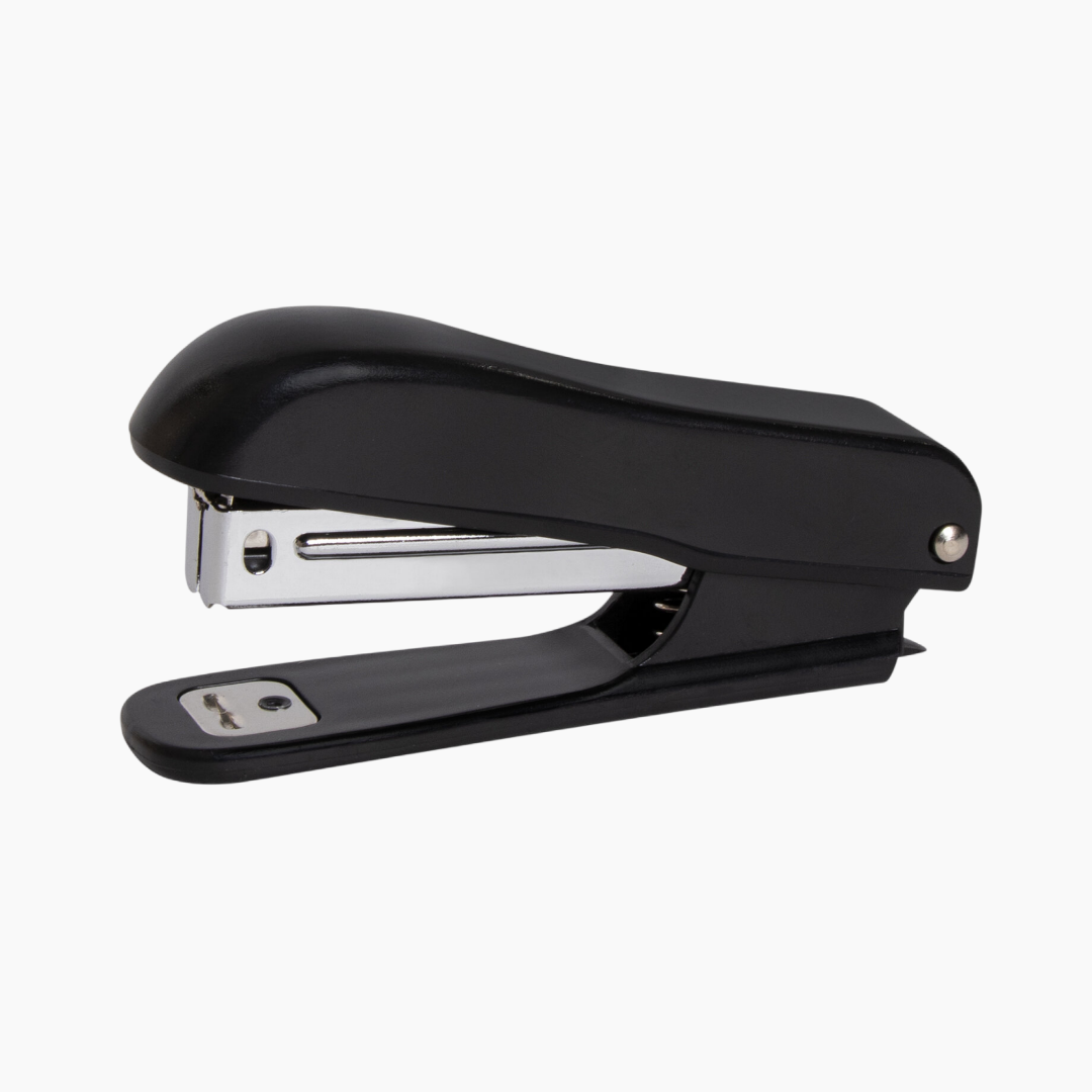 Канцелярский степлер — это инструмент для скрепления листов бумаги с помощью металлических скоб. Он широко используется в офисах, учебных заведениях и дома для создания документов, брошюр, отчётов и других материалов. Закрытое скрепление: края скоб загибаются внутрь, обеспечивая прочное соединение. Это наиболее распространённый тип для офисных и учебных задач. Скрепляет до 12 листов, с антистеплером.